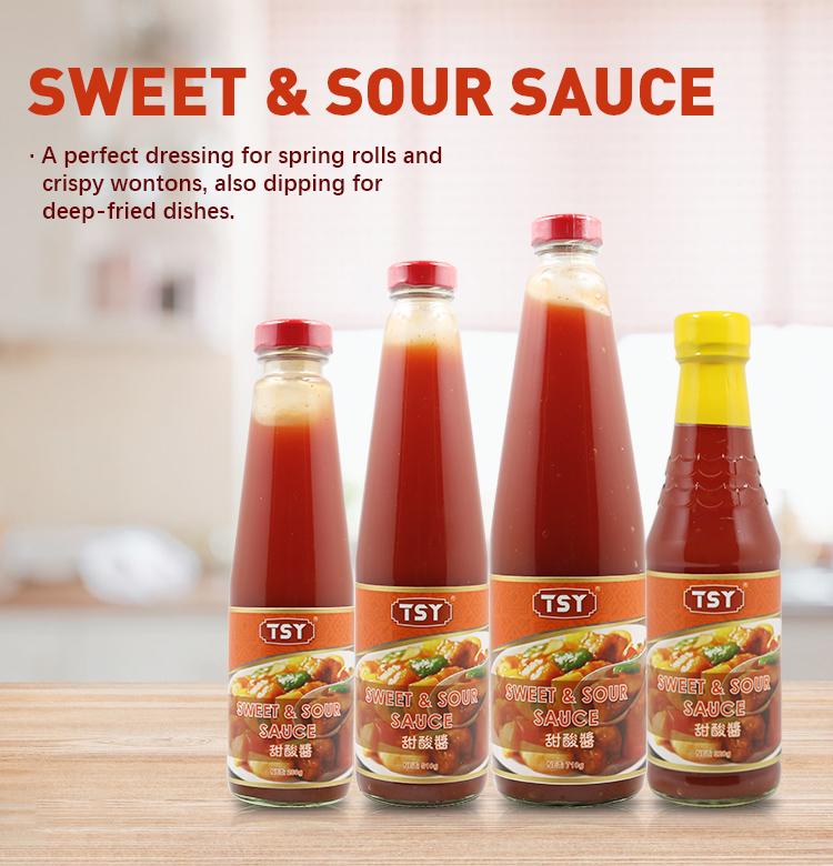 Utilizzato come marinata, salsa di immersione o esaltatore di fritte, la salsa dolce e acida aggiunge un sapore vivace e piacevole alla folla a qualsiasi pasto.